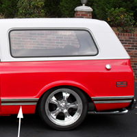 69-72 Blazer Lower Front Quarter Panel Molding, Black, LH Polished Aluminum w/ Black Painted Accents, Clips Sold Separately.