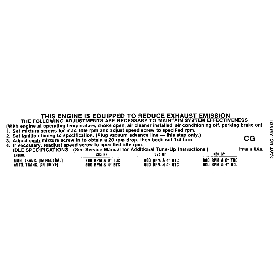69 Tune-Up Label (CG), 396/265, 325, 350 AT/MT