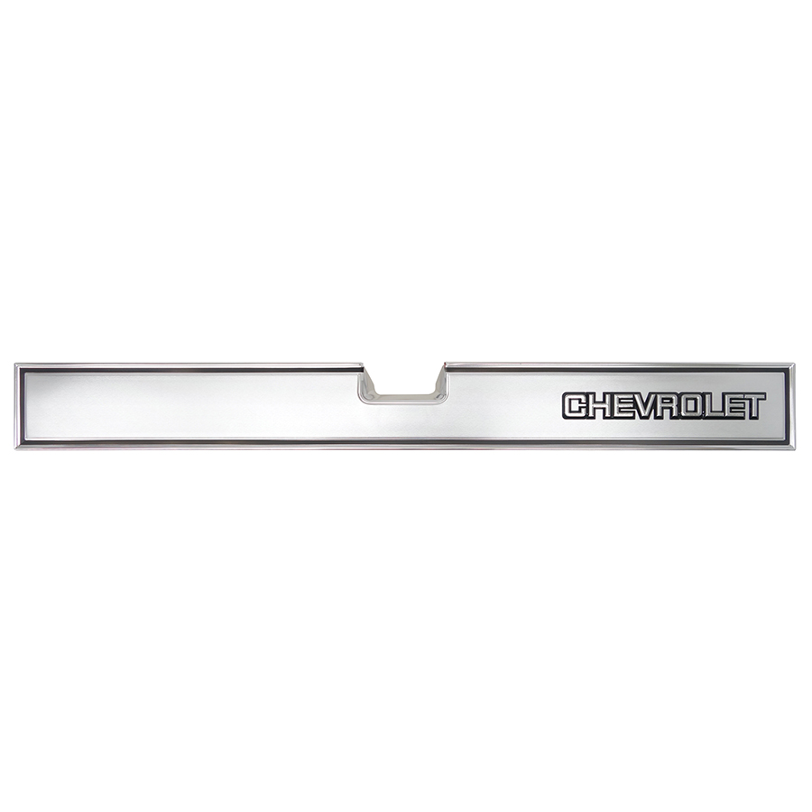 81-87 Chevrolet Truck Tailgate Band, "CHEVROLET" 81-91 Chevrolet Crew Cab or Dually Fleetside, Brushed Aluminum with Black Trim, Complete with Mounting Hardware. Replaces GM #14027521