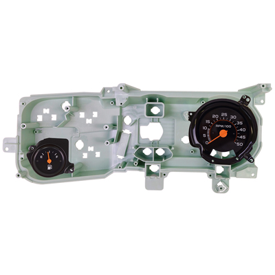 Includes: Tachometer gauge, bracket, wire harness, fuel gauge, printed circuit with clips, front and rear gauge housing, instrument lens, dash signal indicator lens with gaskets and housing screws.