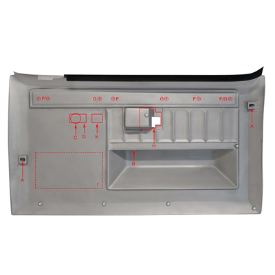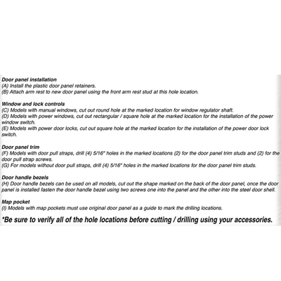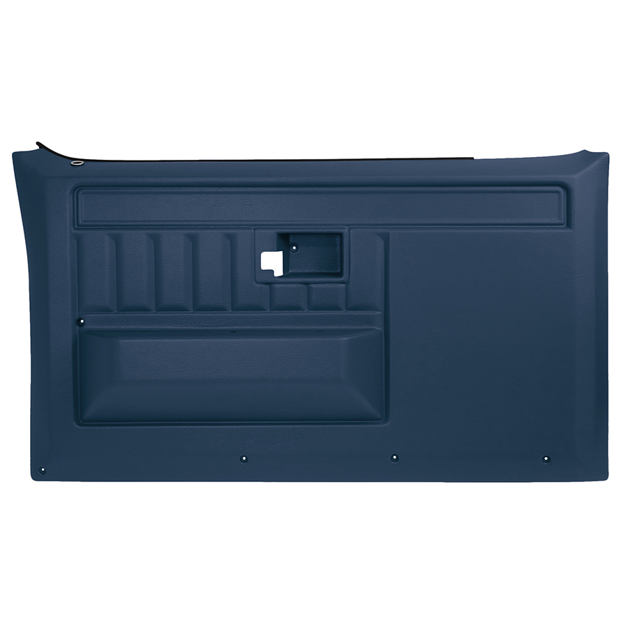 81-87 "Original Style" Front Door Panel Replacement, Blue. **Note**Your Original Trim & Moldings Can Be Used On These Panels, Or Purchased Separately. These Panels Have Pre-marked Locations On The Back Of The Panel For Window Crank, Power Window Switch, Power Door Lock Switch, And Door Panel Trim.
