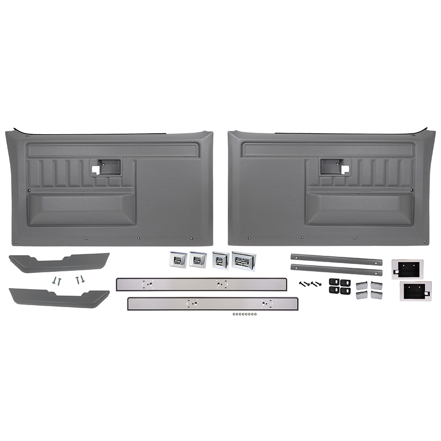 81 Chevrolet/GMC Truck Deluxe Door Panel Kit, w/ Power Window/Door Lock Switches, Gray with Power Windows & Power Door Lock Option.