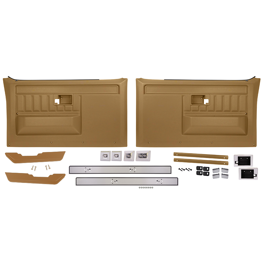 Kit Includes: Door Panels Door Panel Trim Set Door Panel Pull Straps, Covers, Reinforcement Plates & Screws. Door Handle Bezels Arm Rest with Screws 1982-87 Power Window and Power Door Lock Swiches