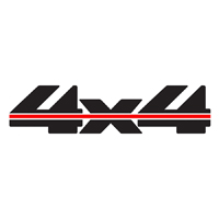 88-98 "4X4" Bedside Decal, Argent W/ Red Stripe.