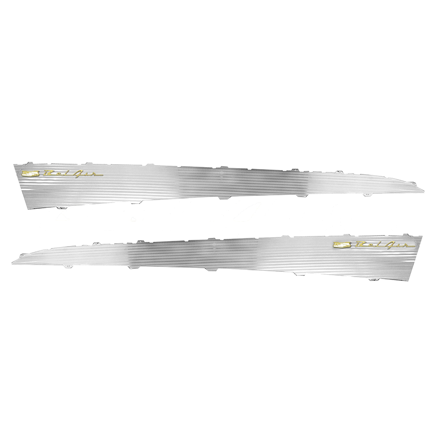 **CALL**57 Chevrolet 2-Door Bel-Air Quarter Panel Inserts, with "Bel-Air" Gold-forged Aluminum Emblems Installed, Pair