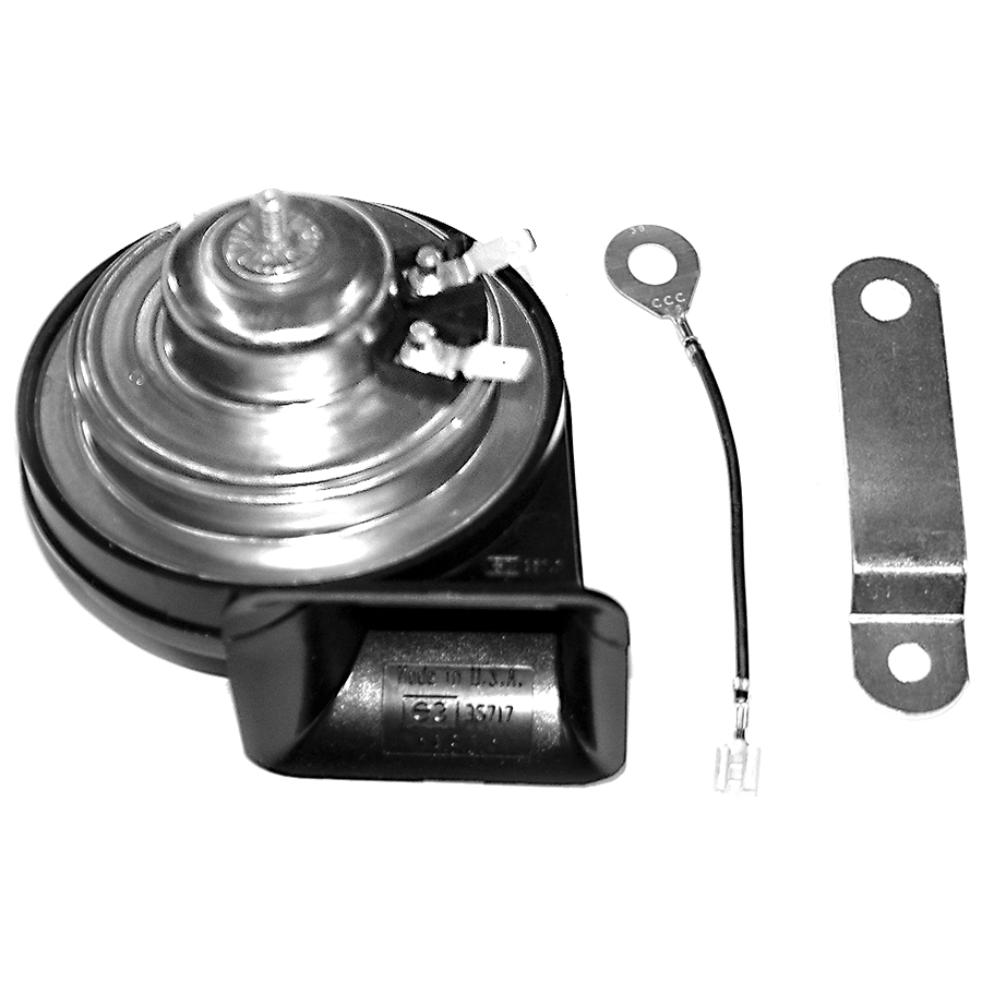 Chevrolet Replacement Horn, High Note, 12 Volt Complete with Hardware and Wiring Pigtail.