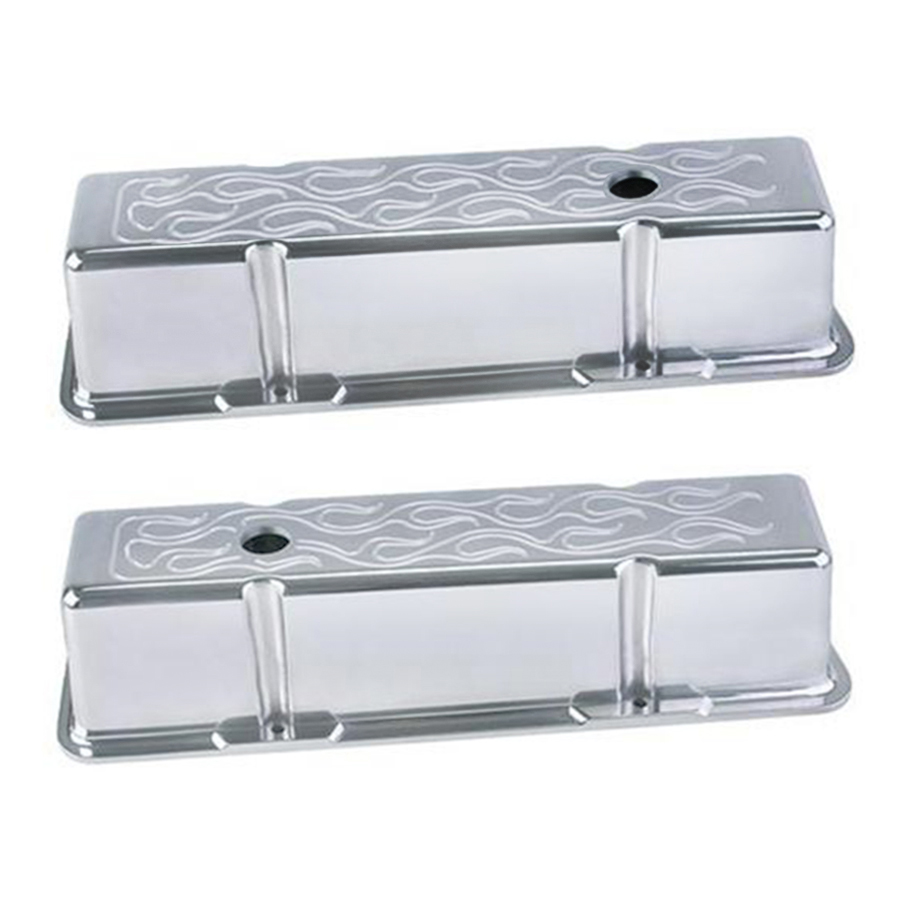 Chevrolet Small Block Polished Aluminum Valve Covers with Flames, Tall, Pair