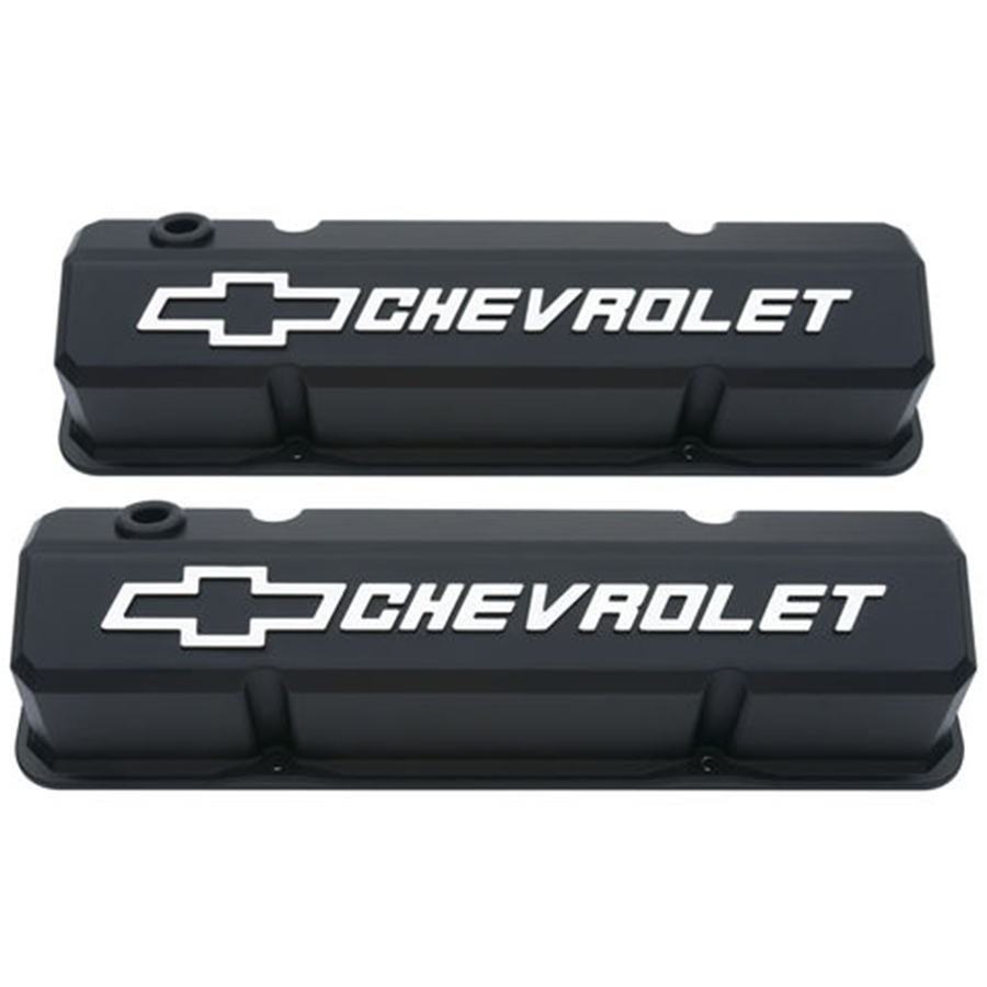 Chevrolet Small Block V8 Car - Competition Cast Aluminum Valve Covers, Black, Pair. Cast aluminum "Bow-Tie" valve covers for Chevy Small Block V8's.