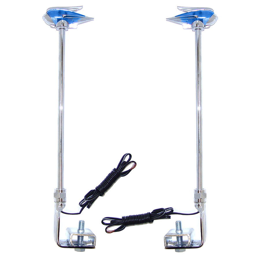 Classic Style Fender Guides, Chrome with Lighted Blue Top, Telescopic Post, Pair Helps indicate the position of the outer edge of the fender