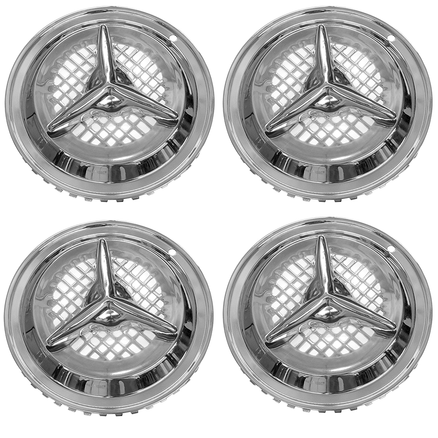Fiesta Hub Cap Set, 15" Chrome Tri-Bar w/ White Painted Details, 4-Pieces