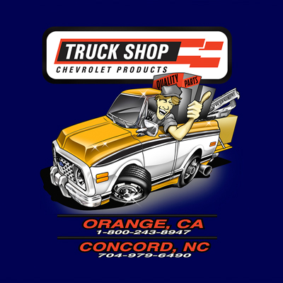 Men's T-Shirt 72 Toon "Truck Shop" - Blue, X-Large Large 72 Toon Image on Back, Small Truck Shop Logo on Front LH Breast.