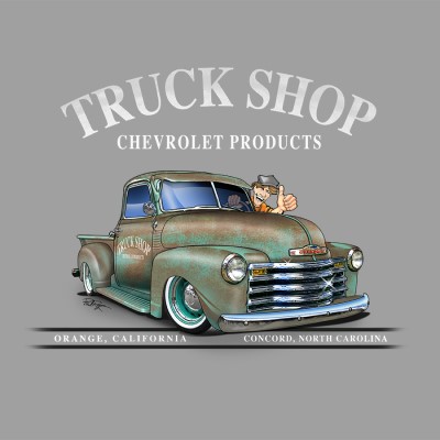 Men's T-Shirt - Patina Pick-Up Truck Shop - Gray, X-Large Large Pick-up Image on Back, Small Truck Shop Logo on LH Breast.