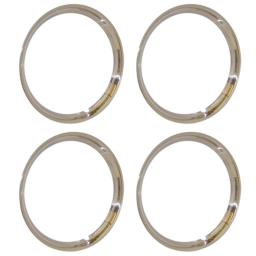 Wheel Trim Ring Set, 16" Ribbed Polished Stainless Steel, Set of 4, Fits inside rim lip.
